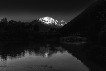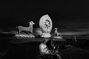 明度在黑白作品中的极致运用,在影调调性上主要呈现出两种特性,即低长调和高长调,而低长调作品尤如蒙古长调一样,悠远、凝重、耐看,尤为摄影师所钟爱!在低长调作品中,布满画面的大面积黑色构成整个作品的基调,而点缀其中的某点或某个局部的白色,则如一枚跳动的音符,往往给人以惊叹、震憾!